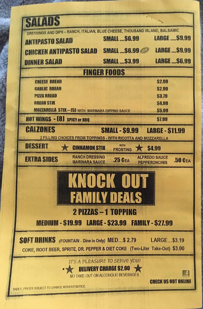 - Community Spot: With delivery and takeout options, as well as outdoor seating, Knockout Pizza is perfect for families, kids, and group gatherings alike.